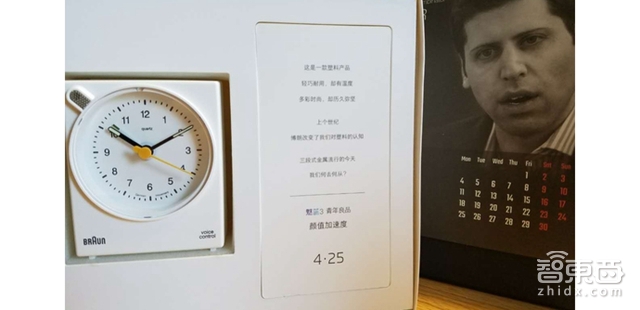 邀请函内包好一个塑料闹钟,文字表述称:“这是一款塑料产品,轻巧耐用,却有温度;多彩时尚,却历久弥新;上个世纪,博朗改变了我们对塑料的认知;三段式金属流行的今天,我们何去何从?”