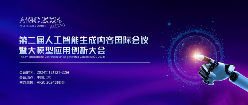 人工智能生成内容(AIGC)和大模型正在以前所未有的速度进入应用市场,成为改变世界的关键力量之一。从艺术创作到科学研究,从日常娱乐到工业生产,AIGC的应用范围越来越广,影响力也越来越大。为了探讨这一领域的未来方向,分享最新的科研成果,促进国际间的合作交流,“第二届人工智能生成内容国际会议暨大模型应用创新大会”(AIGC 2024)将于2024年12月21日至22日在北京隆重召开。