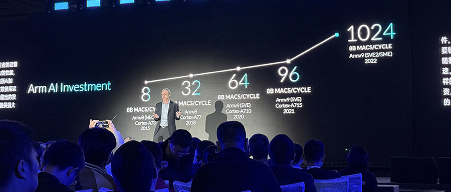 在硬件投资方面,Armv8 64位架构在10多年前发布。进入AI时代,Arm推出了Armv9。