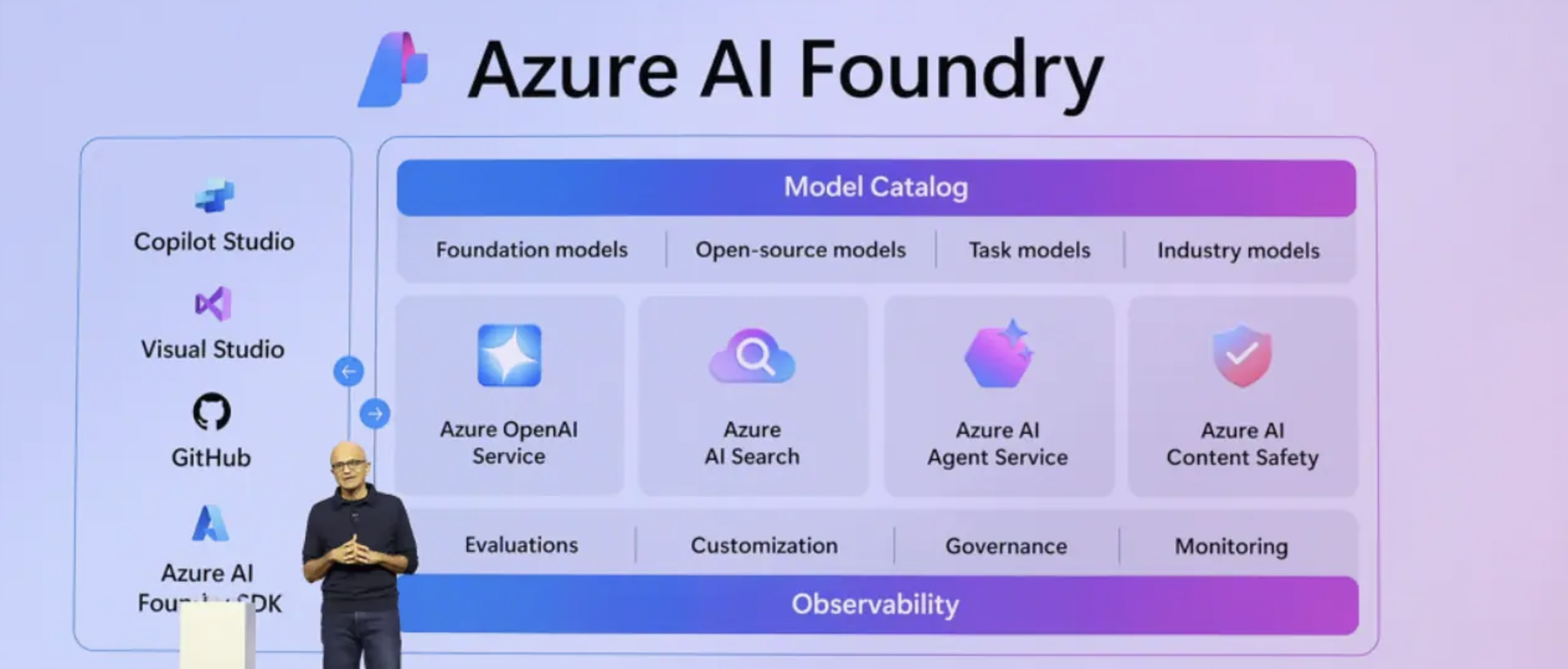 此外,微软还推出了Azure AI Foundry SDK。该SDK提供了低代码工具链,让开发者能够自定义、测试、部署和管理Agent。开发者可以从25种预构建模板中选择,并通过SDK将Azure AI与GitHub或Copilot Studio等应用集成。