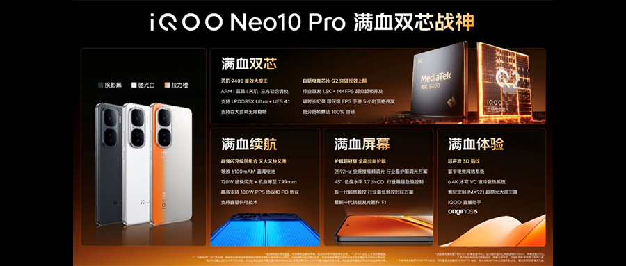 天玑芯片调教一直是vivo的强项,这次iQOO、MediaTek和Arm联合,Neo10 Pro能更精准地控制性能输出,做到高性能同时低功耗。