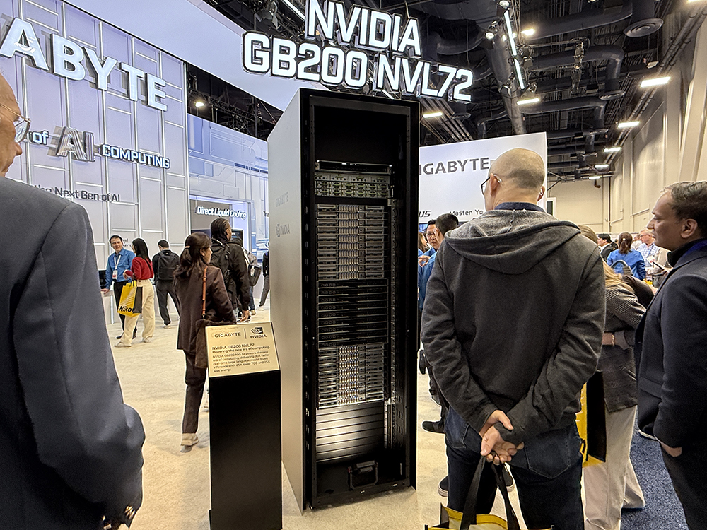 昨天英伟达创始人兼CEO黄仁勋在主题演讲中cosplay美国队长时挥舞的巨型“盾牌”NVL72,今天就出现了在技嘉的展台上。