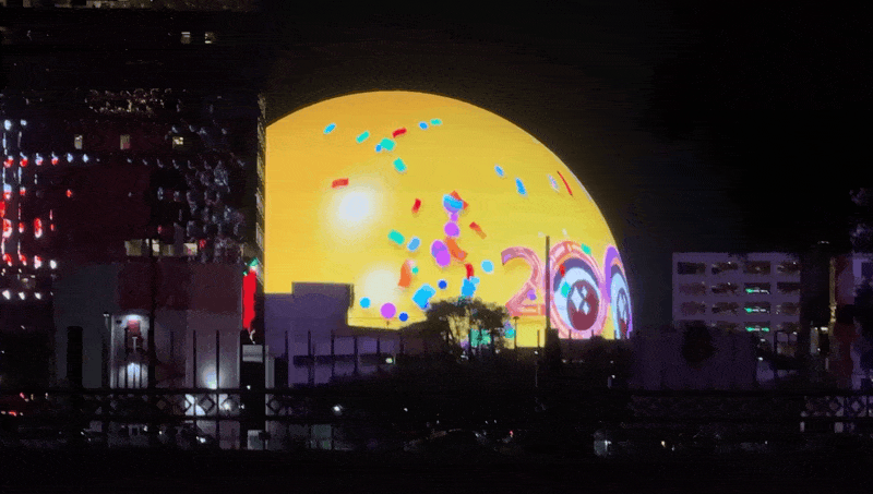 SK门口有21块大屏幕组成的超大屏幕,并且屏幕前后错落放置,不同角度看到的画面效果不同。