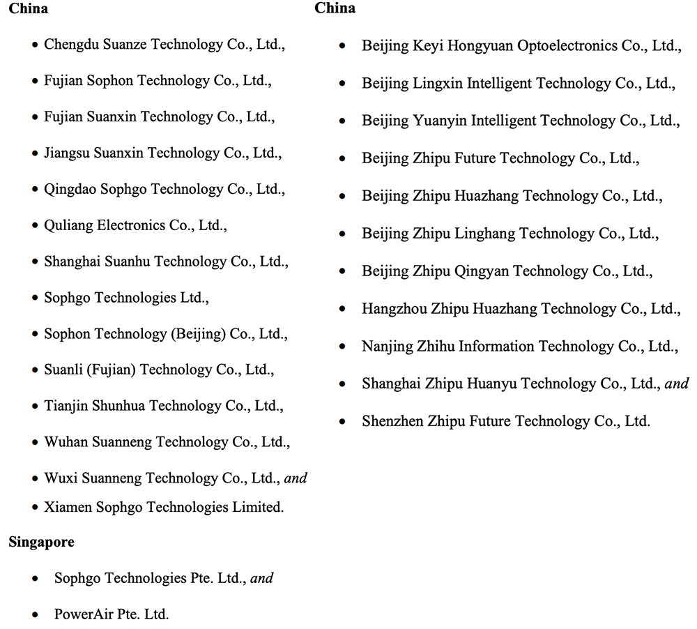 芯东西1月16日报道,昨夜,美国商务部工业和安全局(BIS)发布两项新规,一项更新了先进计算半导体的出口管制,另一项将14家中国实体和2项新加坡实体列入实体清单。这14家实体中有1家是渠梁电子,其他13家是智算芯片公司算能科技及其子公司。
