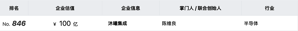 根据胡润研究院发布的《2024全球独角兽榜》,沐曦排名第846位,彼时企业估值100亿元。