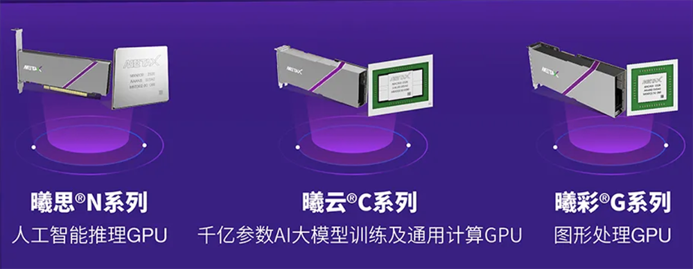 该公司打造全栈GPU芯片产品,推出曦思N系列GPU产品用于智算推理、曦云C系列GPU产品用于通用计算、曦彩G系列GPU产品用于图形渲染,满足“高能效”和“高通用性”的算力需求。根据官网,其产品均采用完全自主研发的GPU IP,拥有完全自主知识产权的指令集和架构,配以兼容主流GPU生态的完整软件栈(MXMACA)。