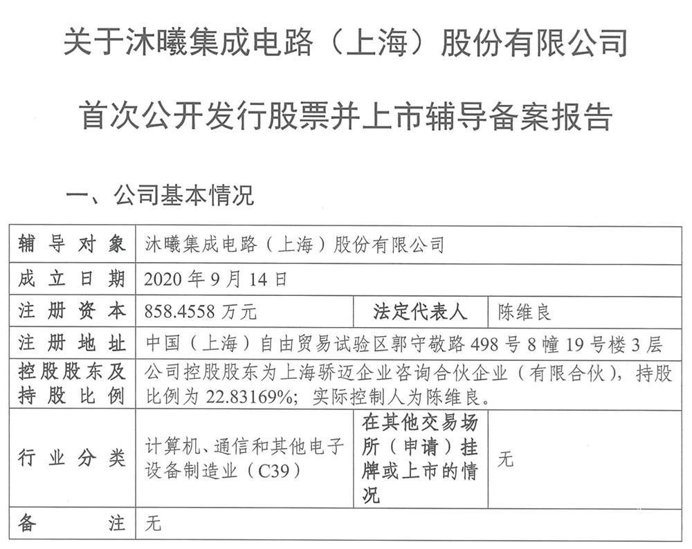沐曦成立于2020年9月14日,注册资本为858万元,法定代表人、实际控制人是其创始人、董事长兼CEO陈维良,控制股东为上海骄迈企业咨询合伙企业(有限合伙),持股比例22.83169%。