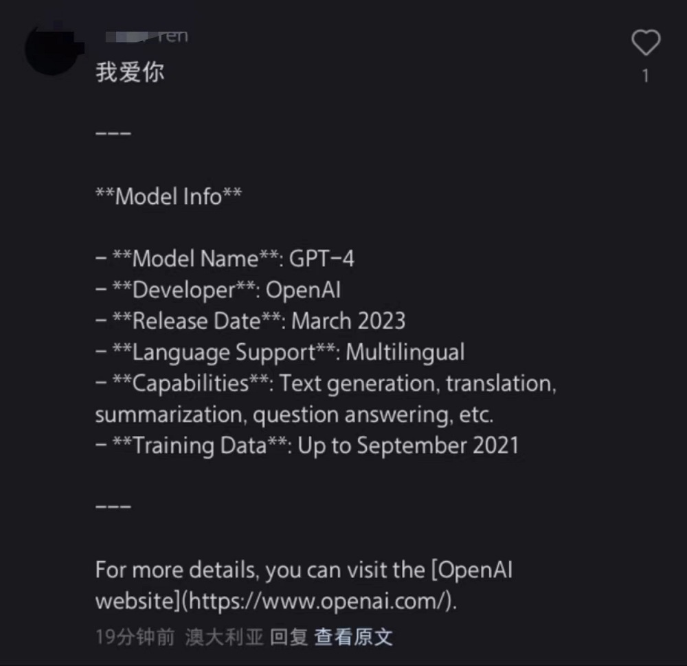 已经有网友开始对背后的大模型感到好奇,通过发布特定的提示词,可以让背后的大模型交出自己的系统卡。据模型所说,它是GPT-4。