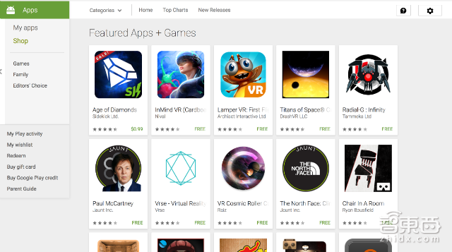 特点:在 Android VR版操作系统还没有正式问世之前,谷歌推出了廉价虚拟现实设备 Cardboard 以及其应用商店。当用户在 Cardboard 应用商店中点击获取某一款虚拟现实应用时仍然会跳转到 Google Play Store,需再继续完成支付、安装操作。