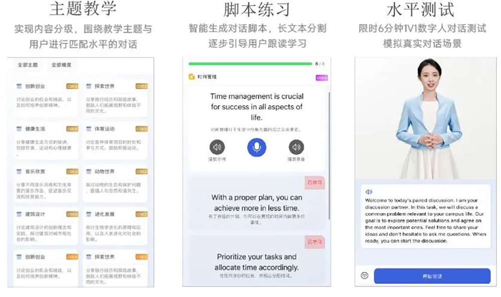 ETalk口语平台基于DeepSeek动态适配学生水平,主题对话、脚本练习等功能,支持一对一学外语。