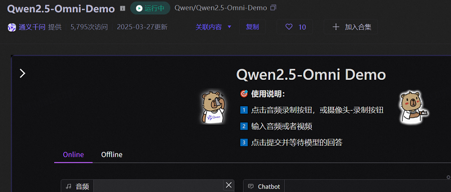 Demo体验:https://modelscope.cn/studios/Qwen/Qwen2.5-Omni-Demo