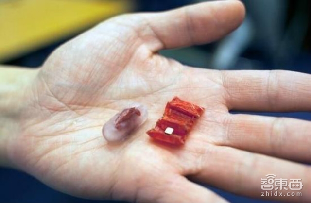 这个可折叠机器人,由麻省理工,谢菲尔德大学及东京工业大学共同研发完成,它能遇热自动伸展,可以作为医用胶囊,通过外部的磁铁控制其行动方向,可以爬进你的胃里,把你误吞食的电池取出,甚至修补人体内的破洞。
