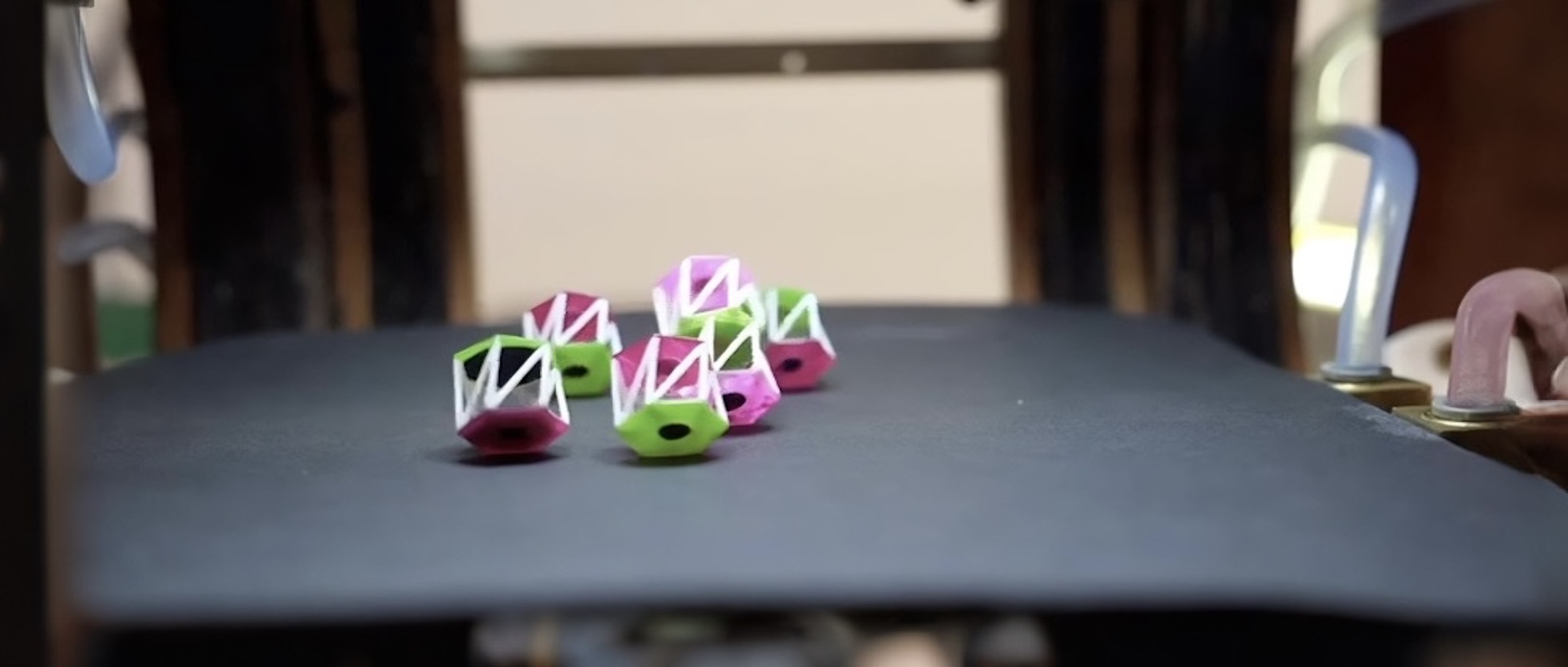 这些单元呈手性(镜像对称)排列,通过底部连接形成长圆柱体,每个单元可独立响应精确设计的磁场,产生扭转、压缩或展开等动作。