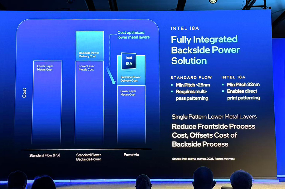 该节点引入了业界首创的PowerVia背面供电技术,实现了电源线与互连线的分离,有效改善供电和降低功耗,使芯片内部空间得到更高效的利用,可将ISO功耗效能提高4%,将标准单元利用率提升5%~10%。下一代Intel 14A将采用PowerDirect直接触点供电技术,实现更直接、更高效的连接。