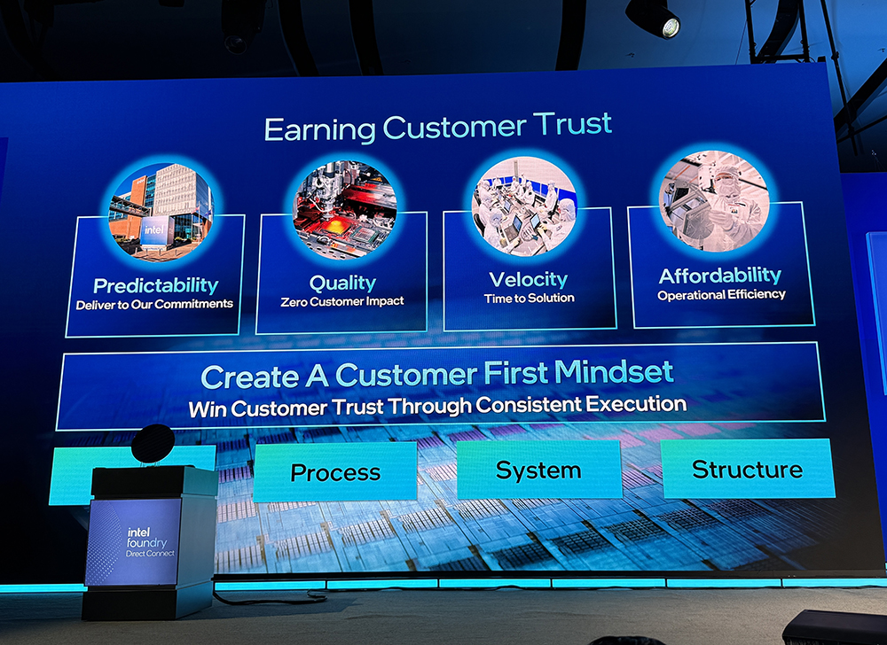 英特尔奉行“客户至上”的理念,关注可预测性、质量、速度、可负担性,希望通过始终如一的执行力,赢得客户信任。其代工业务正在削减不必要的流程,倾听客户和生态合作伙伴的意见反馈,从“用英特尔的产品来衡量成功”转向“通过向客户提供产品来衡量成功”。