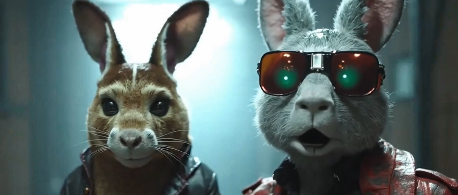 ▲两只由AI生成的兔子在单块消费级GPU上渲染而成,它们短暂地望向镜头后便迈步离开(数据来源:Lightricks)
