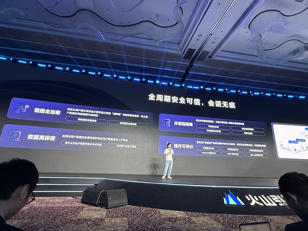 火山方舟还提供全周期安全可信方案,通过链路全加密、数据高保密、环境强隔离、操作可审计四个安全模块,确保会话无痕。