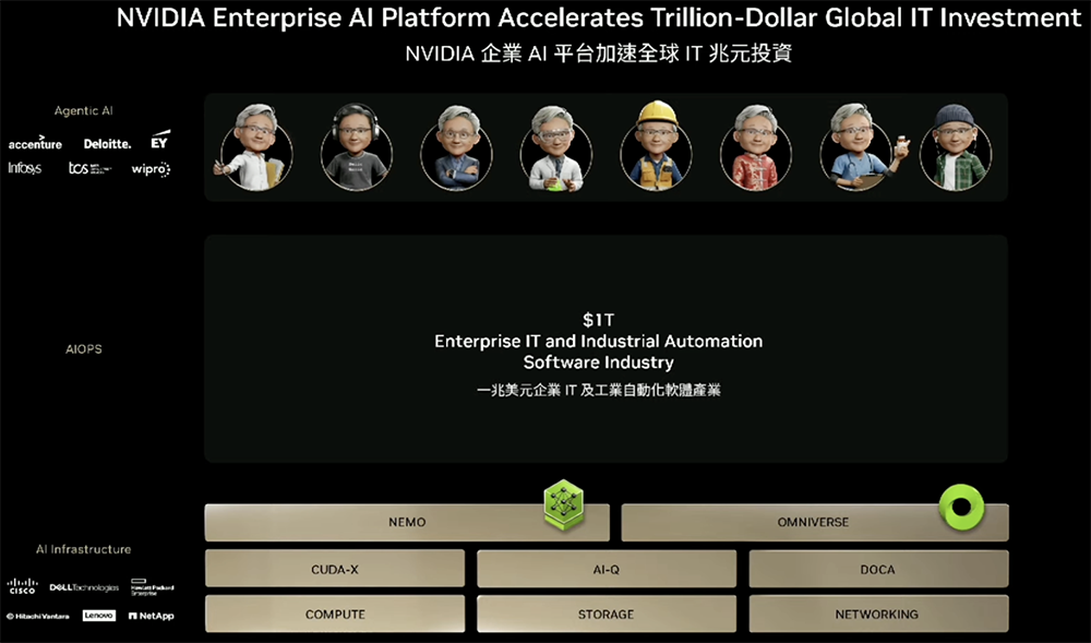 英伟达企业AI平台正在加速全球IT一万亿美元投资。该平台包含三层:AI基础设施、AIOps、代理式AI。