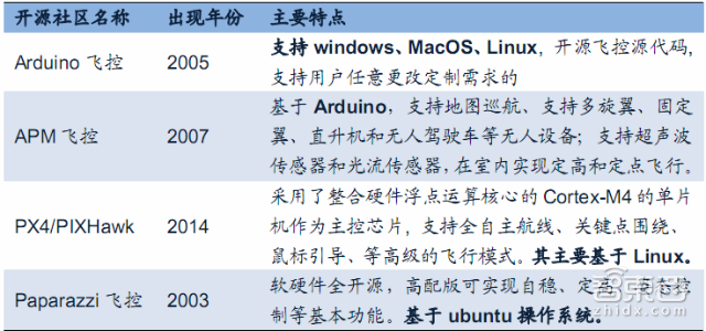 在无人机领域最早出现开源项目是无人机的飞控软件领域,目前流行的开源无人机飞控(包含软硬件)如下。