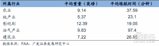 4.FAA还统计了其首批批准的商业应用无人机的性能。从中可以看出这些商业应用无人机绝大部分还是平均重量5KG(11.02磅),续航时间30分钟左右的轻型无人机,这一类无人机的特性和消费级无人机非常接近。