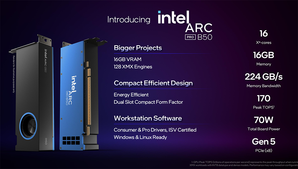 英特尔锐炫Pro B60/B50 GPU基于Xe 2架构,具备AI特性,为要求严苛的AI推理工作负载和工作站应用而设计,进一步丰富了英特尔专业级GPU产品线。
