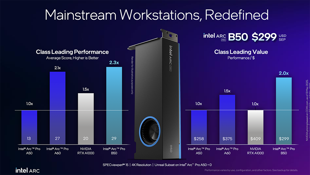 一、锐炫Pro B50:AI性能提升至3倍,性价比较RTX A1000翻番