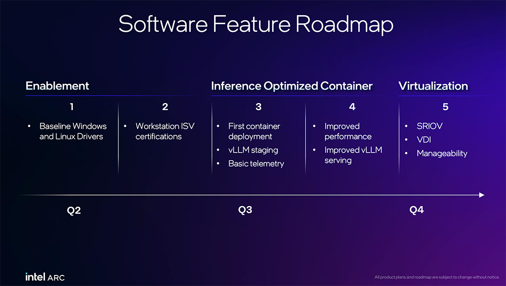 英特尔还展示了软件功能路线图,预计第三季度发布经过完整验证和产品化的容器,第四季度推出SR-IOV、VDI虚拟桌面的软件性能优化以及完整的管理功能。