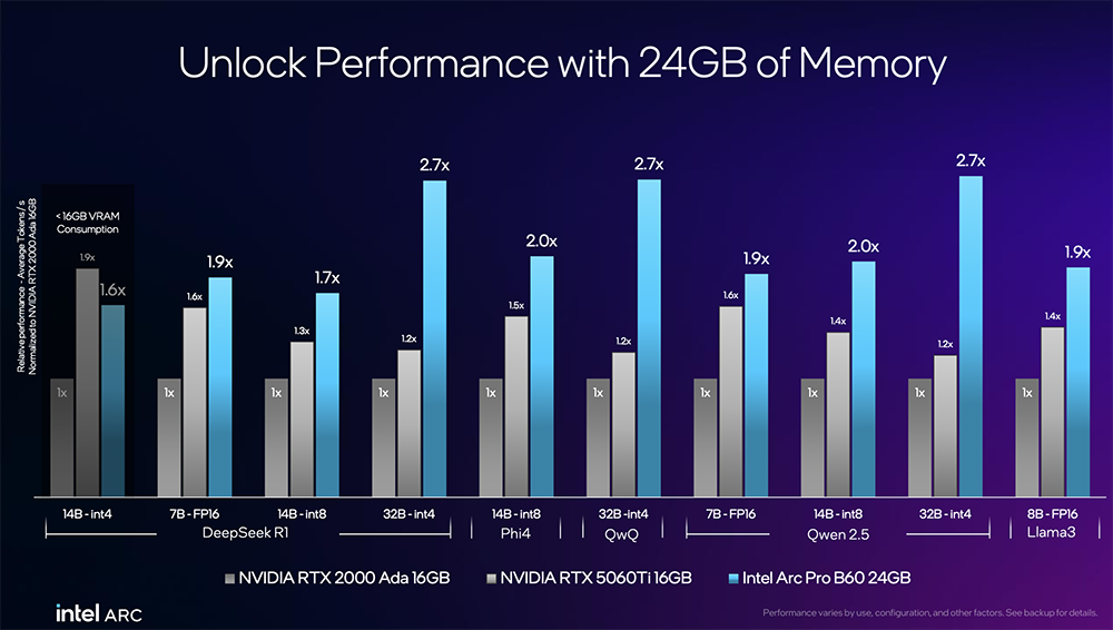 二、锐炫Pro B60:AI峰值算力197TOPS,跑DeepSeek-R1倍杀RTX 5060Ti