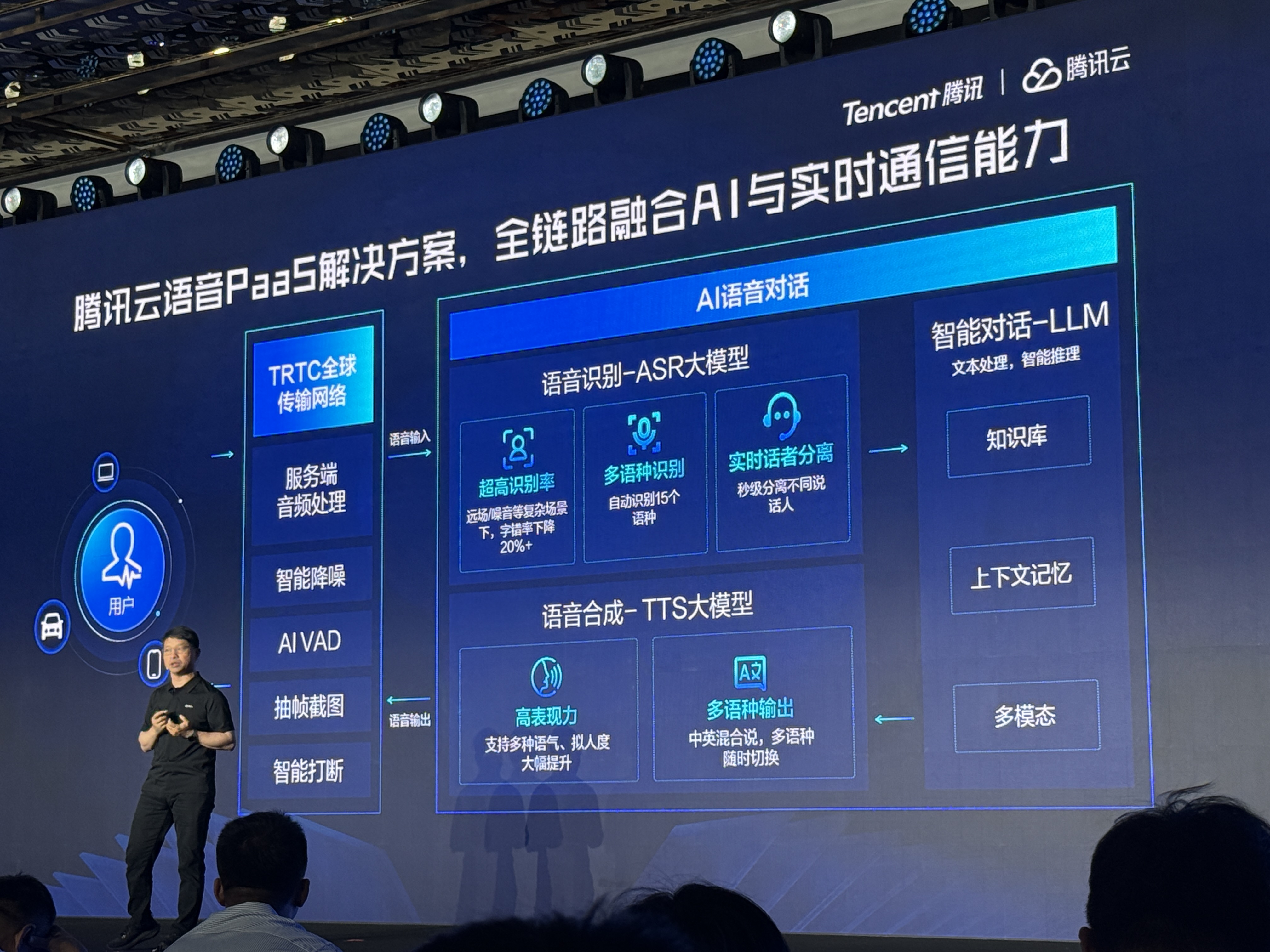 今日,腾讯云语音PaaS解决方案发布。该方案可接入混元、DeepSeek等大模型和实时通信能力深度融合,构建了从语音输入到智能处理到自然输出,还有实时交互的全面闭环,为企业提供低成本、可快速搭建的项目解决方案,帮助企业优化用户销售体验。