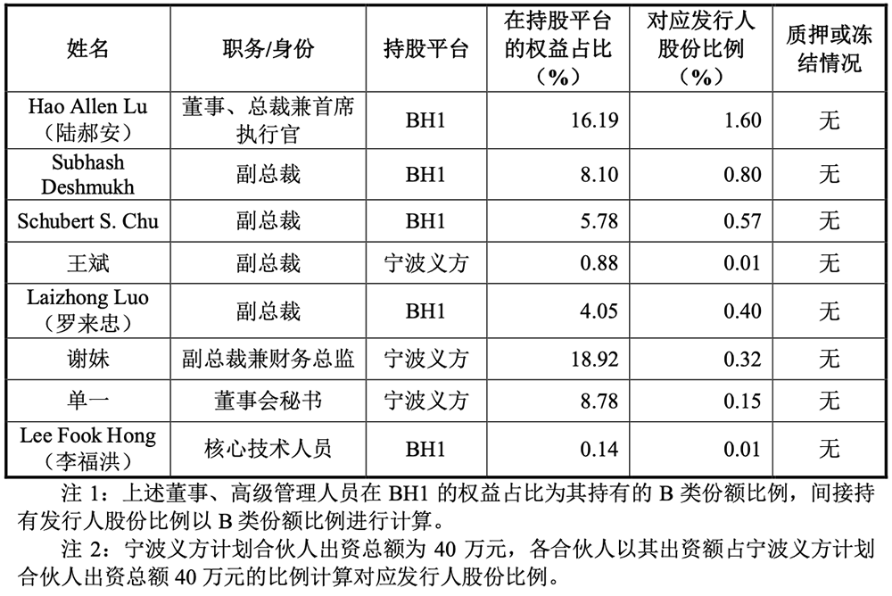 屹唐股份董事、监事、高级管理人员、核心技术人员及其近亲属未直接持有公司股份,其中部分人员通过BH1、BH2和宁波义方间接持股。