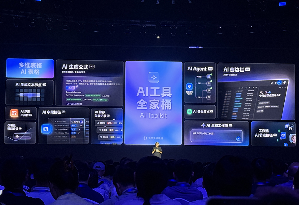 飞书多维表格负责人施凯文说,飞书多维表格的定位更新为AI表格,像一个“业务百宝箱”,今日升级数据库、仪表盘、应用模式、AI工具全家桶,并通过AI生成公式、AI字段捷径、AI推荐关联记录等AI功能带来便利。用户可在表格里直接调用各种AI功能。