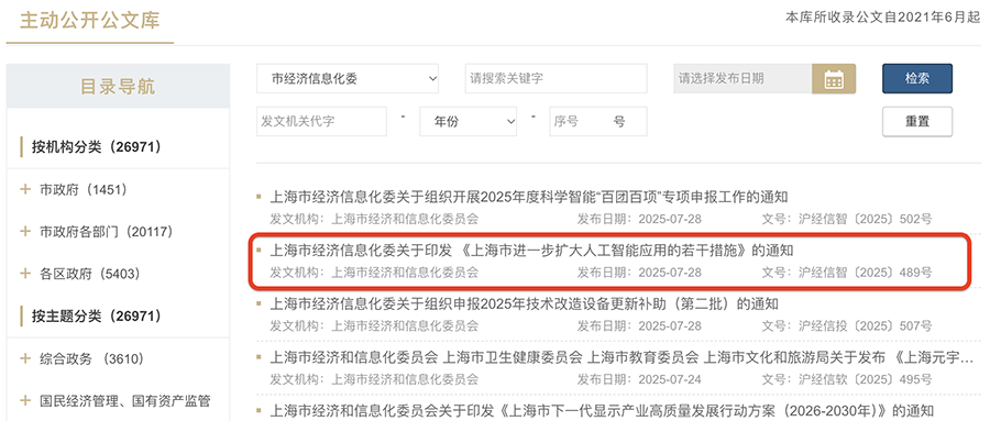 智东西7月29日消息,7月28日,上海市经济信息化委发布 《上海市进一步扩大人工智能应用的若干措施》,旨在加快实施“人工智能+”行动,进一步扩大人工智能应用,加快打造世界级人工智能产业集群。