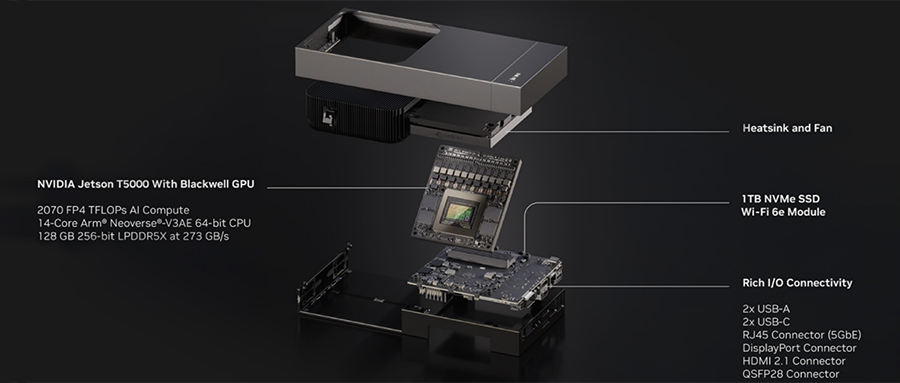 它还与英伟达从云到边缘的软件栈完全兼容,包括用于机器人仿真和开发的Isaac平台、Isaac GR00T人形机器人基础模型、用于视觉AI的NVIDIA Metropolis和用于实时传感器处理的NVIDIA Holoscan等。
