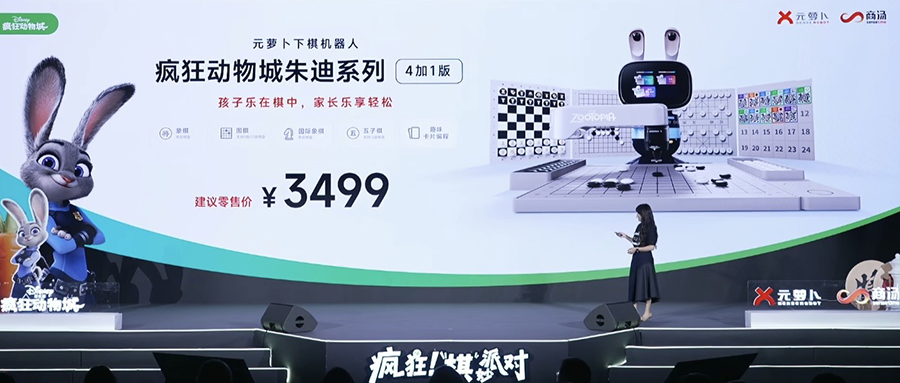 智东西8月26日报道,今日,商汤科技旗下家用机器人品牌“元萝卜SenseRobot”联动迪士尼经典动画电影《疯狂动物城》发布年度重磅新品——“元萝卜下棋机器人疯狂动物城朱迪系列4加1版”(简称“元萝卜朱迪系列”)。