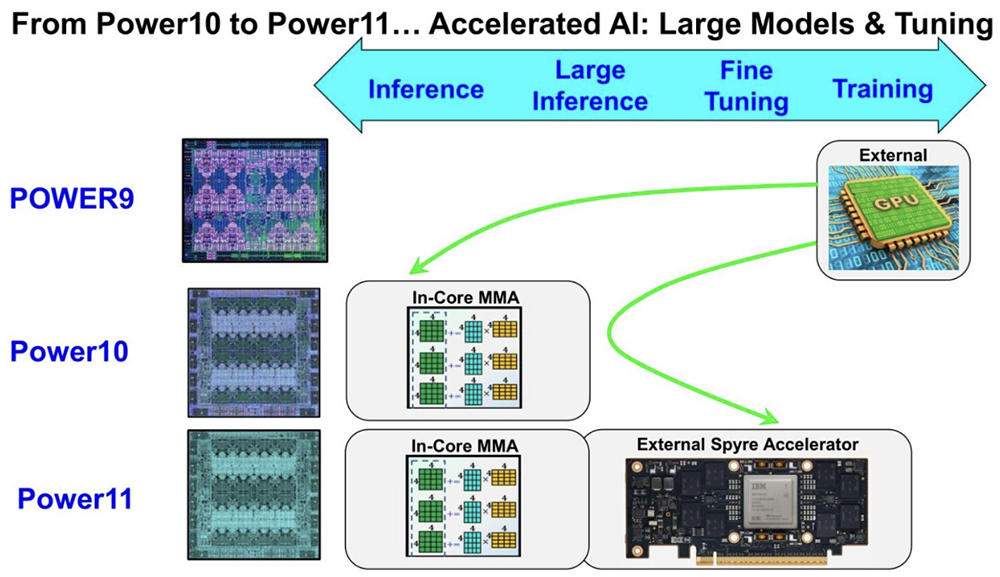 Power11还将带来对外部PCIe加速器的优化支持。IBM拥有自己的Spyre加速器。