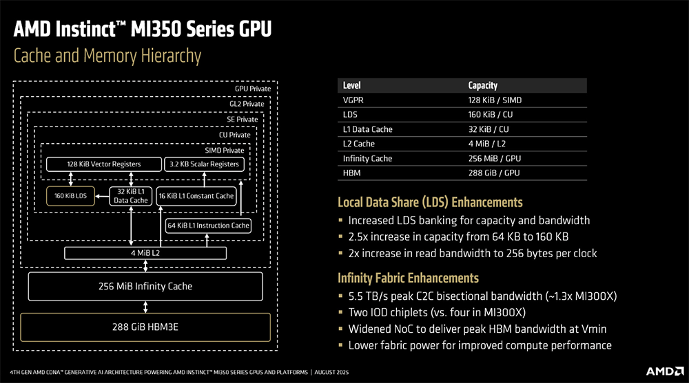 从缓存和内存层次来看,LDS相比MI300翻倍。
