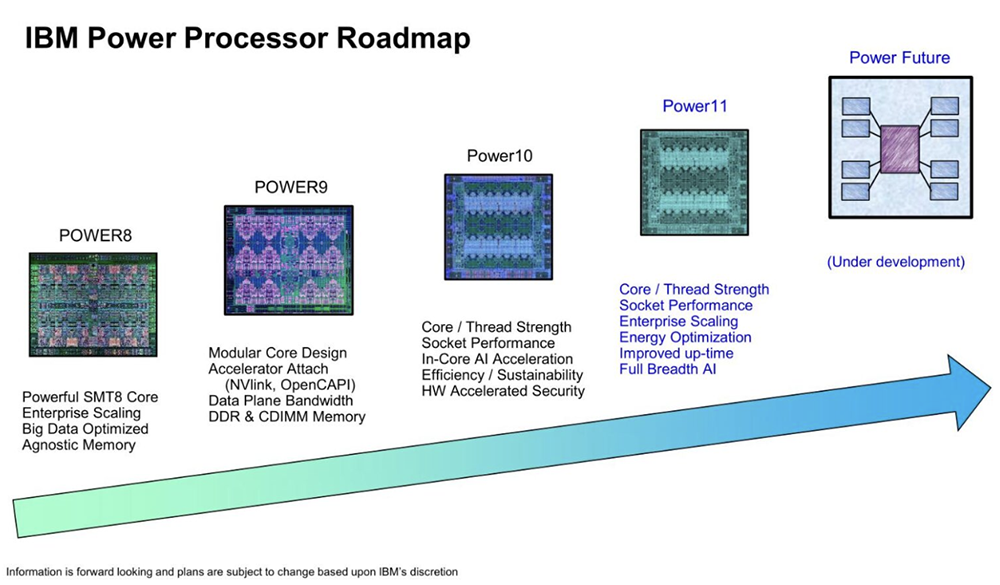 IBM的CPU研发理念是按需增加核心数,计划在后代Power处理器设计中聚焦几个重点:每个插槽上集成的硅片数是上一代的3倍(小chiplet有生长空间),制造良率协同效应,跨chiplet保持强带宽的能力,OMI内存Beachfront效率(启用高带宽SMP/IO接口),实质性延迟减少/拓扑协同(持续稳健扩展),长期发展效率和灵活性。