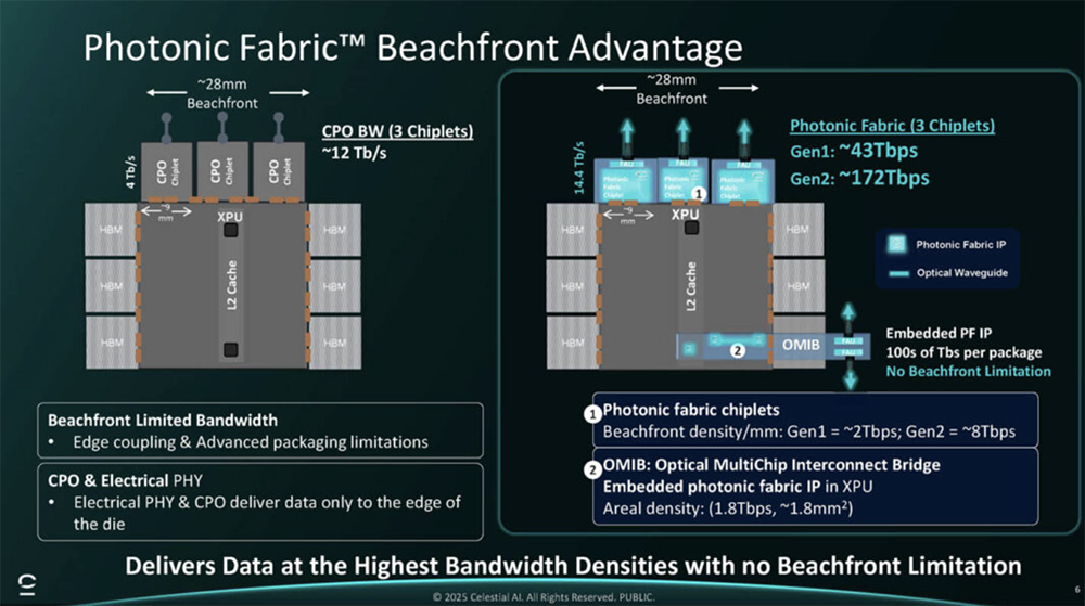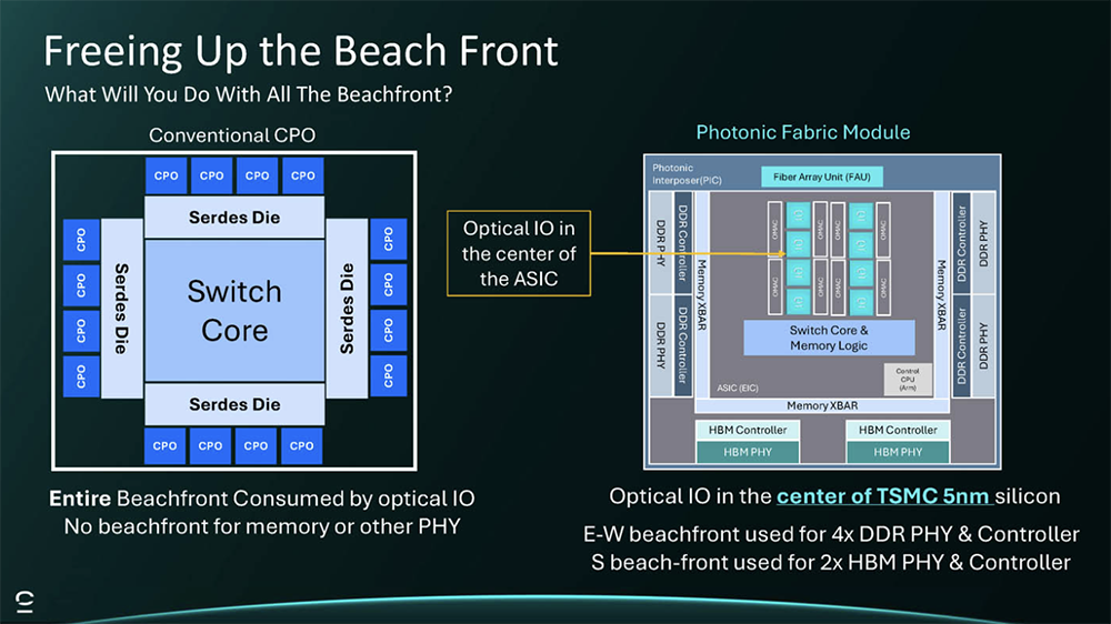 HBM接口占用了大量的片上空间,会蚕食计算空间。减少I/O接口面积则能腾出芯片边缘支持高速信号传输腾出更多接口空间,从而提高带宽。
