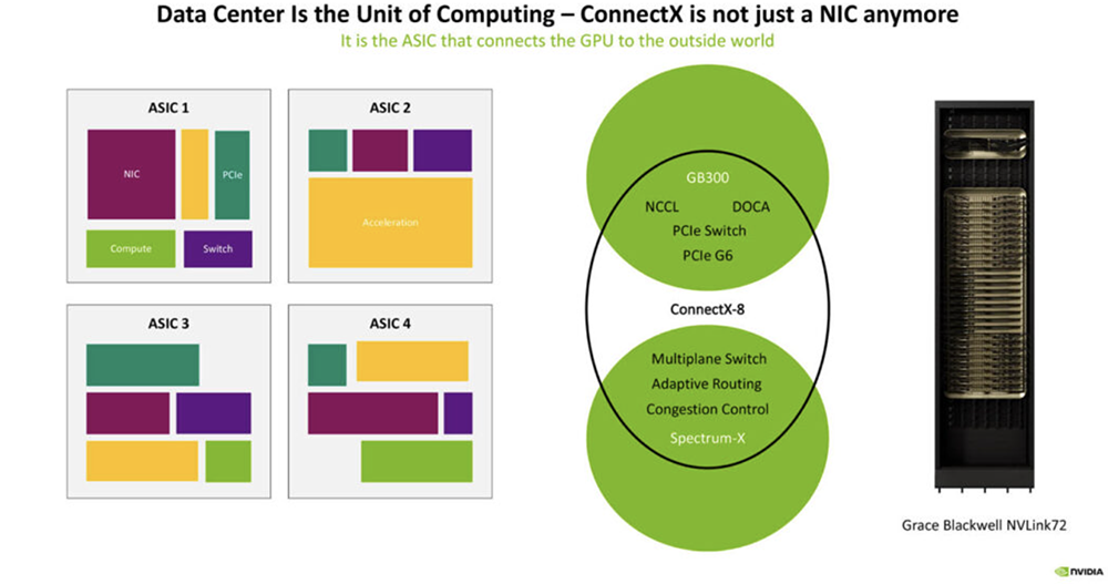AI计算的技术重点已经非常清晰了:突破存储瓶颈,提高数据传输速率,支持FP8、FP4等低精度数据格式,实现能将上百万个芯片互连的高速网络,以及源源不断的软件优化。