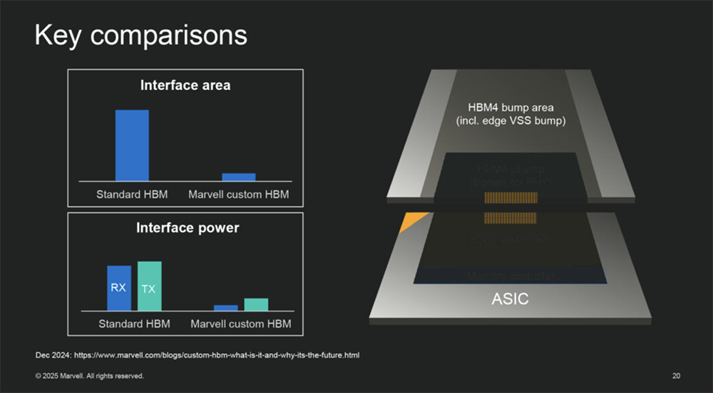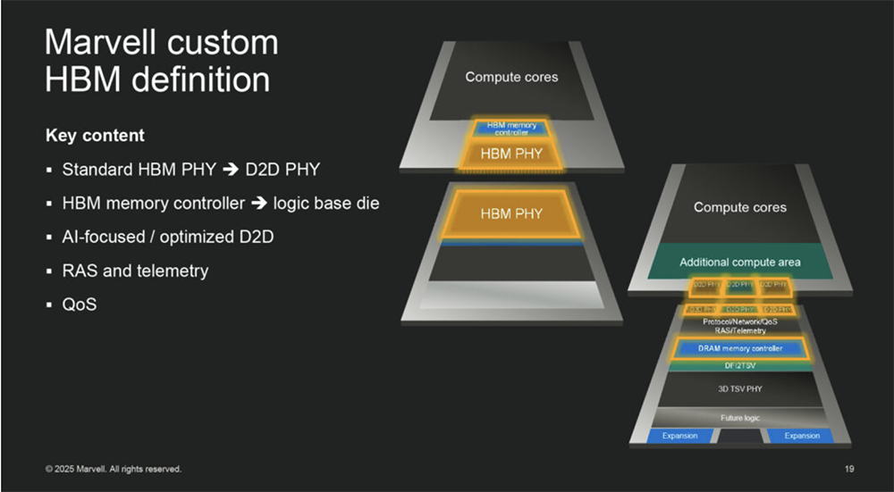 Marvell与SK海力士、三星、美光三大HBM供应商合作开发定制HBM解决方案。其定制HBM通过优化HBM基片及其接口来提高性能。