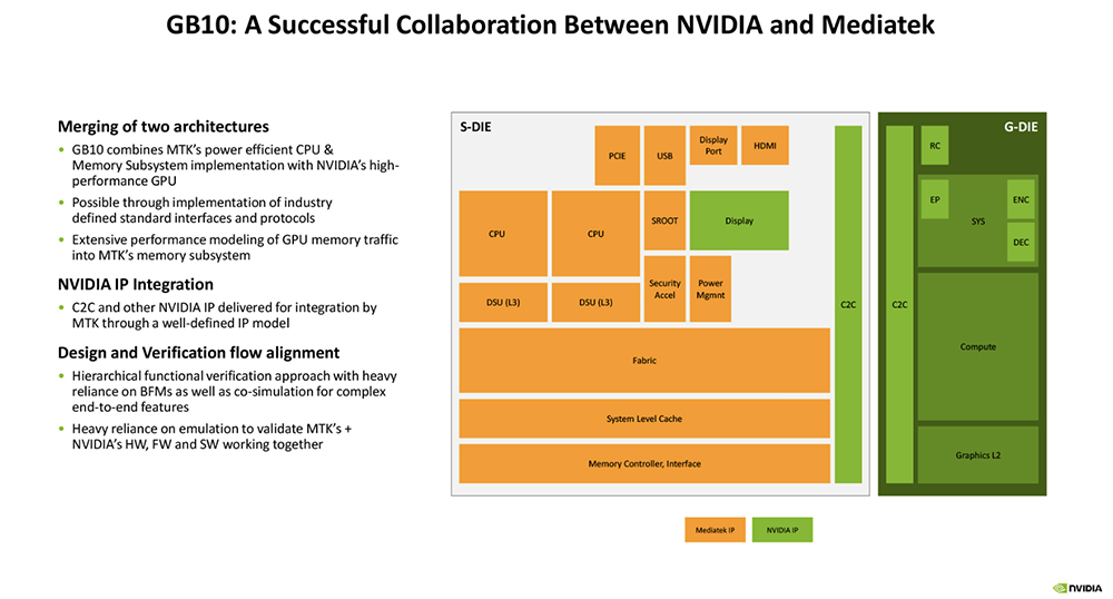 内存子系统也是由联发科提供的。联发科实现了NVIDIA IP的部分功能,包括显示控制器和C2C链接。