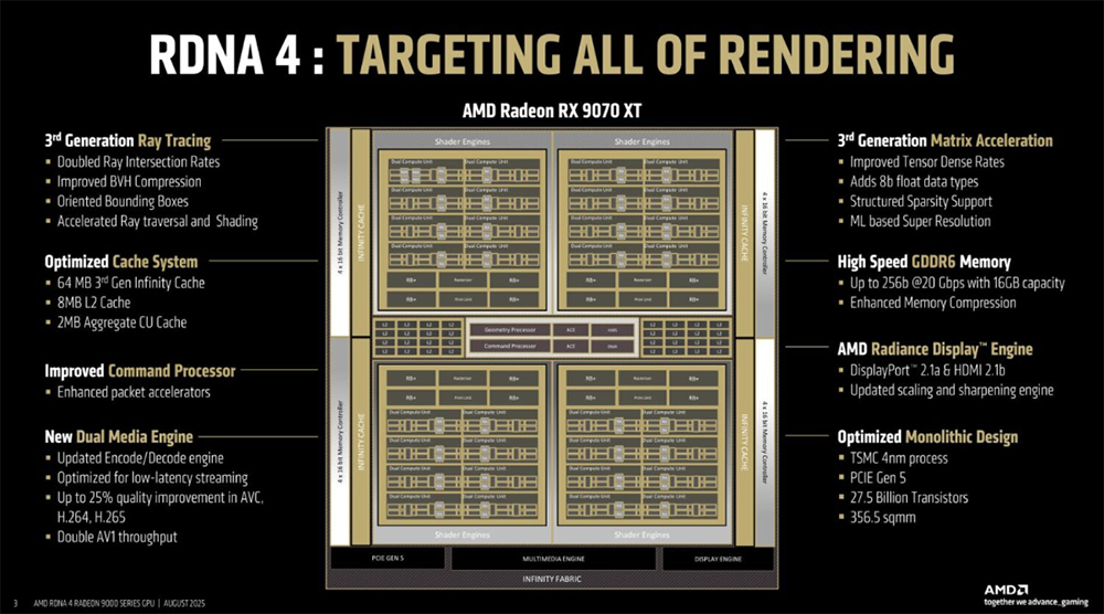 AMD RDNA 4专为下一代游戏和创作而打造,提供了升级的AI计算能力和创新的光线追踪功能,可支持严苛的游戏应用、先进的视频编码和流媒体能力的生产力和媒体创作。