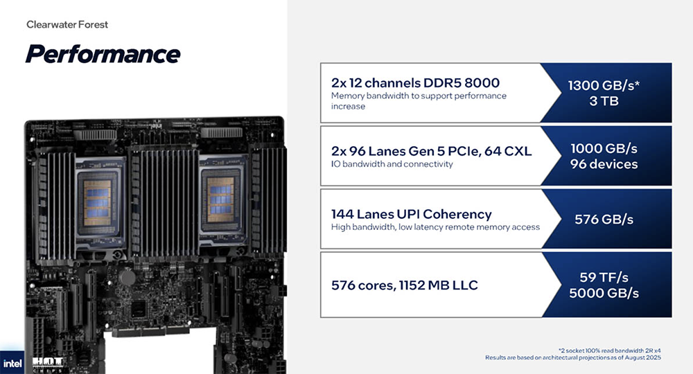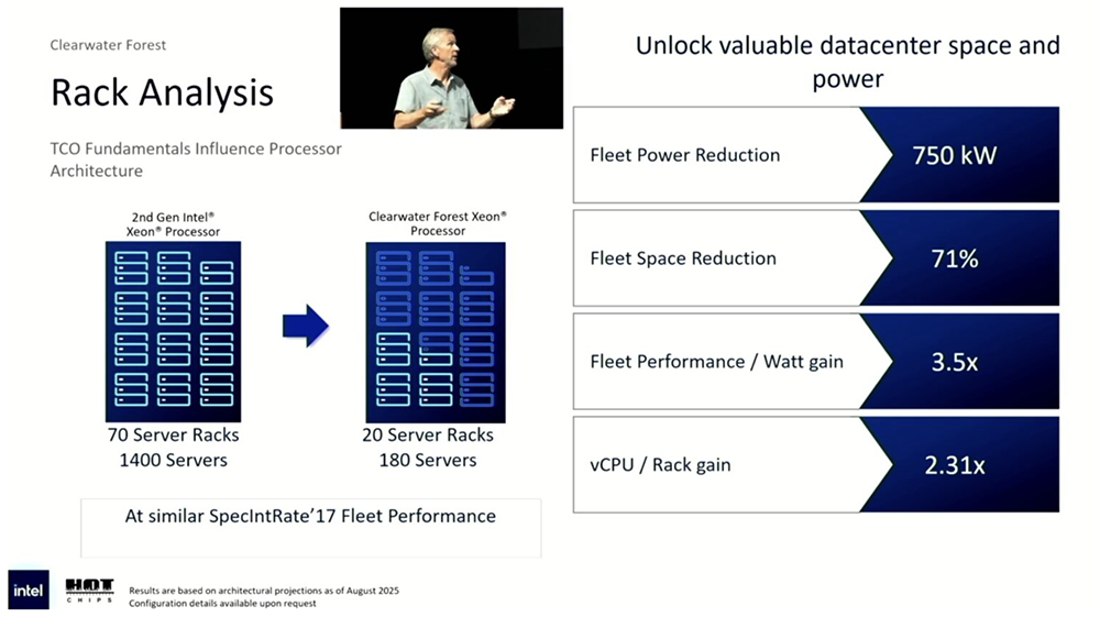 相比Sierra Forest,英特尔称Clearwater机架能够提供3.5倍的每瓦性能。
