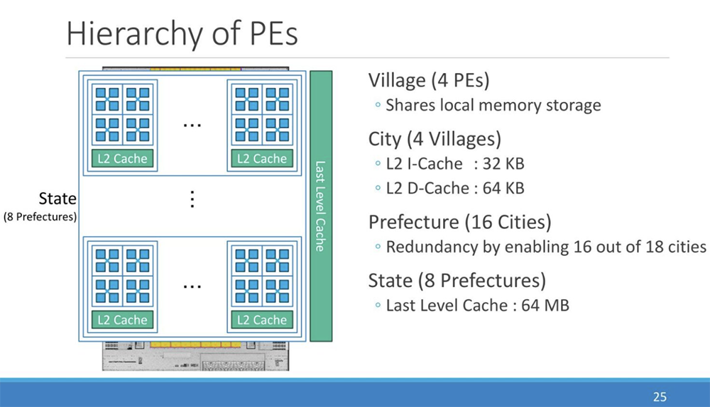 其设计与多数高性能处理器大同小异,提供一个完整的IP设计,除了CPU核心,还有缓存和一致性管理功能,可接入内存和I/O总线。