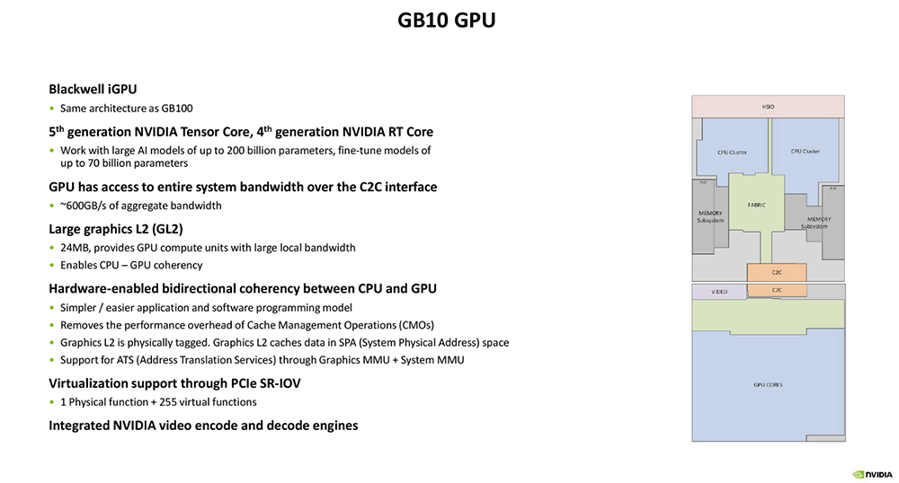 GB10芯片里有一个相对较大的24MB L2缓存,实现了CPU/GPU一致性,可降低性能开销并简化开发。