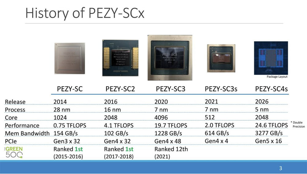 第五代PEZY-SC的设计工作已启动,将采用3nm或更小工艺,预计在2027年发布。