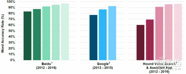人机语音交互的应用关键在于准确率与响应时间,语音识别技术日益成熟,即将突破量变到质变的临界点。百度、Google和其他平台的其中语音识别技术已经能够达到 90%~95%的准确率(低噪音环境下),目前正在向 99%准确率以及高噪音环境应用发展。