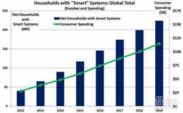 到2019 年,智慧家庭的渗透率预计达12%,市场规模超过1500 亿美元,且随着智能化的普及,该市场仍然具有很大的增长空间。届时,作为入口的智能音响设备,计算能力将得到大幅度提升,“音响”属性将被削弱,家庭智能控制中心的作用会得到加强,并且伴随一波销售热潮占据智慧家庭的核心。