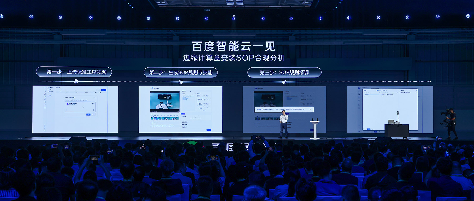 基于慧播星数字人能力和技术打造的AI吴彦祖,就是百度智能云在此之上构建的开箱即用的Agents。除此以外,百度智能云一见视觉大模型平台还正式发布了一见·工序合规分析能力,允许用户零门槛生成SOP规则、AI技能开发周期缩短至几分钟、操作过程实时提醒,让Agents堪比“AI老师傅”。