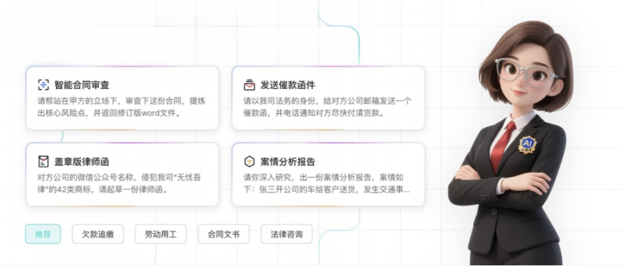 很多人接触过的法律AI产品,大多只是“回答问题”的工具,比如告诉你哪个条款适用、某种情况是不是违法,但一旦涉及写诉状、准备材料、送函催收,用户还是得亲力亲为。